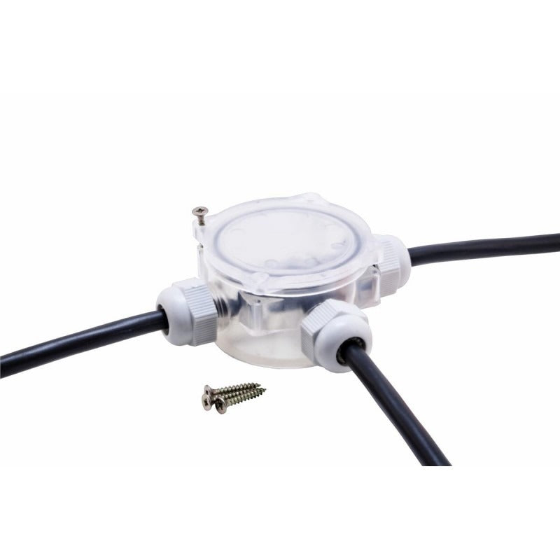 Deze kabeldoos kunt u goed gebruiken om een waterdichte verbinding te creëren. De kabeldoos is voorzien van vier ingangen waar kabels doorheen kunnen met een doorsnede van minimaal 4mm en maximaal 9mm. De kabels kunt u gemakkelijk wegwerken in de doos en deze vervolgens met elkaar verbinden, bijvoorbeeld door middel van onze draad connectors. De kabeldoos is volledig stof- en waterdicht en kan hermetisch worden afgesloten. Hierdoor is de kabeldoos ideaal voor in de tuin, maar deze kabeldoos zou u zelfs voor in de vijver kunnen gebruiken.