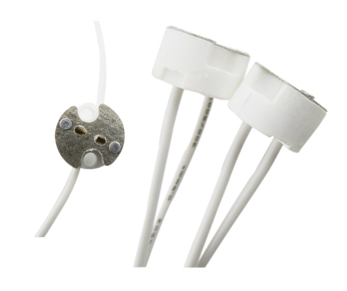 De fitting voor MR16 / GU5.3 lampen heeft 2 gaten waar de 2 pennen van de lampjes in gestoken kunnen worden.