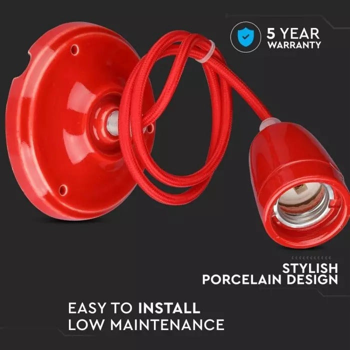 Retro porseleinen lamp - ROOD - E27 fitting - pendel