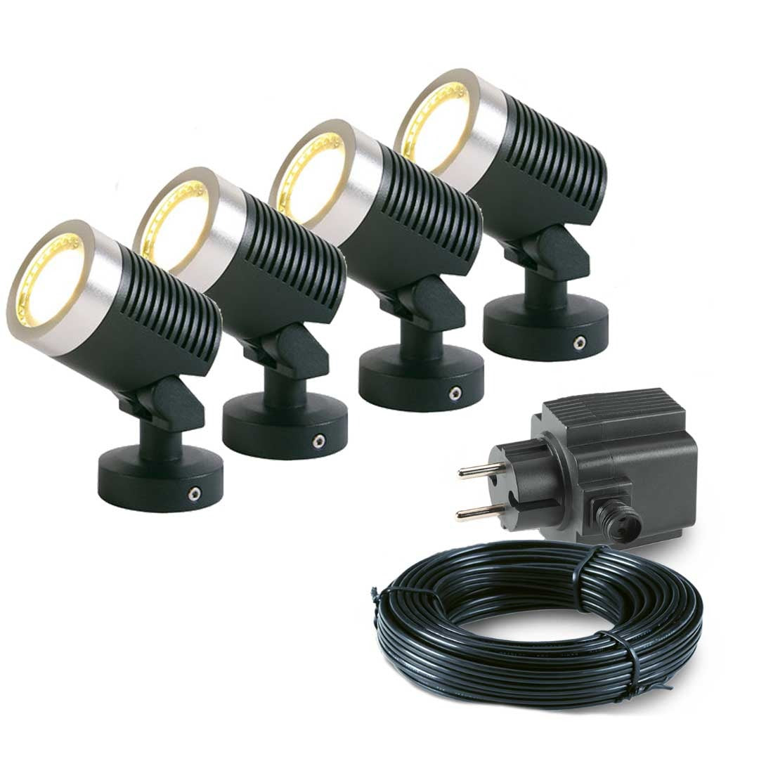 We leveren de complete set met een adapter en een hoofdkabel waar u tot 4 lampen op kunt aansluiten.