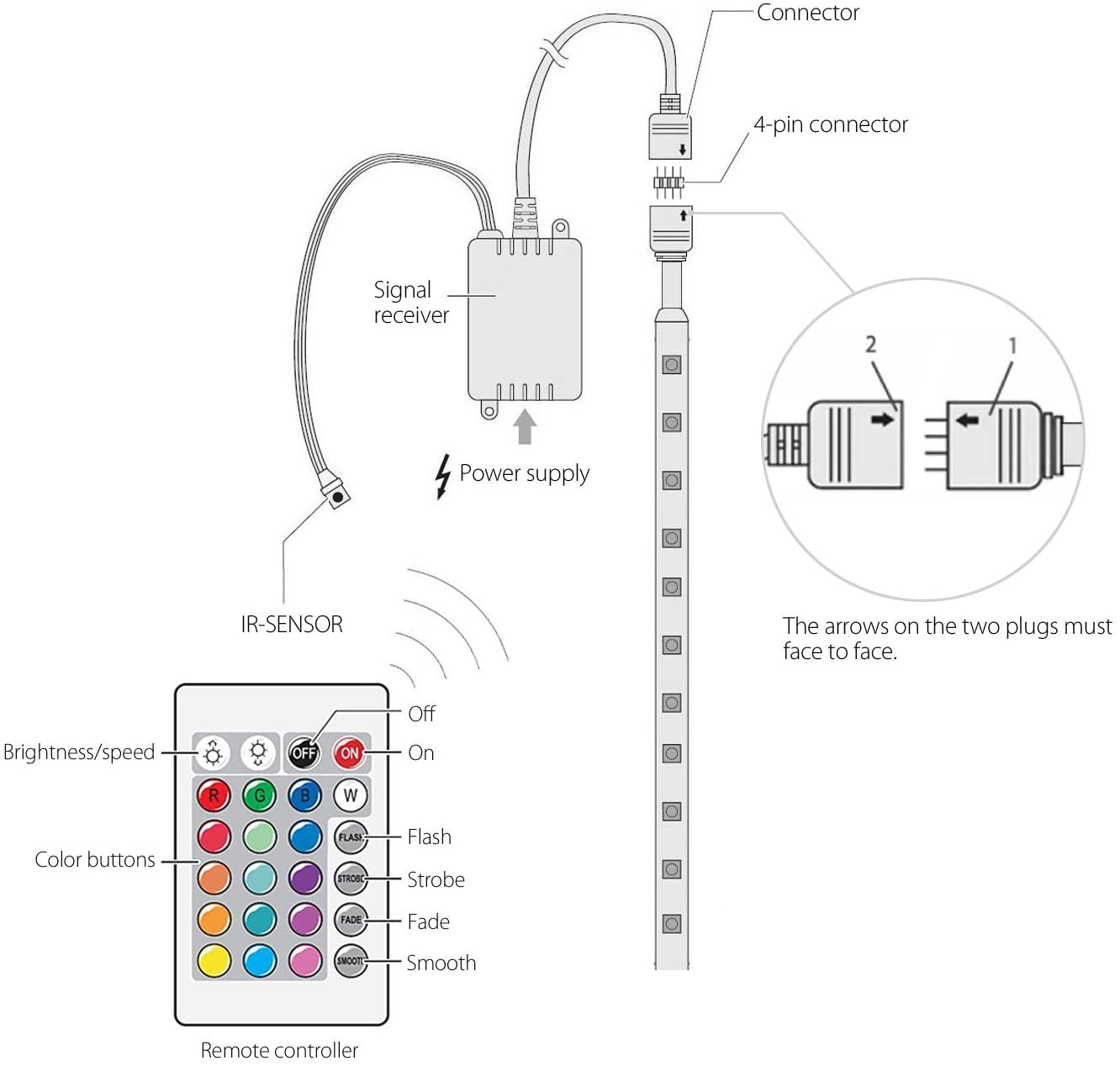 Meegeleverd in de verpakking zit de juiste bijhorende voeding, op deze voeding kunt u Plug&Play de ledstrip in verbinden.