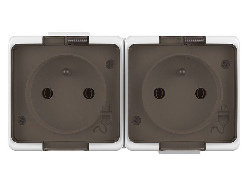 - Dubbele stopcontact waterdicht - Met penaarde - Opbouw Dubbele stopcontact waterdicht - Met penaarde - Opbouw