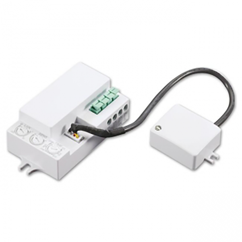 Deze bewegingssensor detecteert zelfs de kleinste bewegingen. Dit wordt mogelijk gemaakt door een externe microgolfsensor die op zeer hoge frequentie elektromagnetische golven uitzendt en de echo van deze golven weer ontvangt. Als er bewogen wordt binnen het bereik van de sensor verandert de echo van de golf, en wordt deze beweging gedetecteerd. Deze bewegingssensor werkt perfect in combinatie met LED-verlichting. Geschikt voor gebruik in huis.