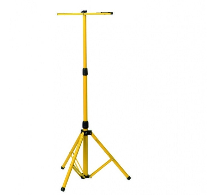 - Dit statief wordt eenvoudig meegenomen naar de klus en op de grond gezet. Dankzij de beugel is de straler verstelbaar.