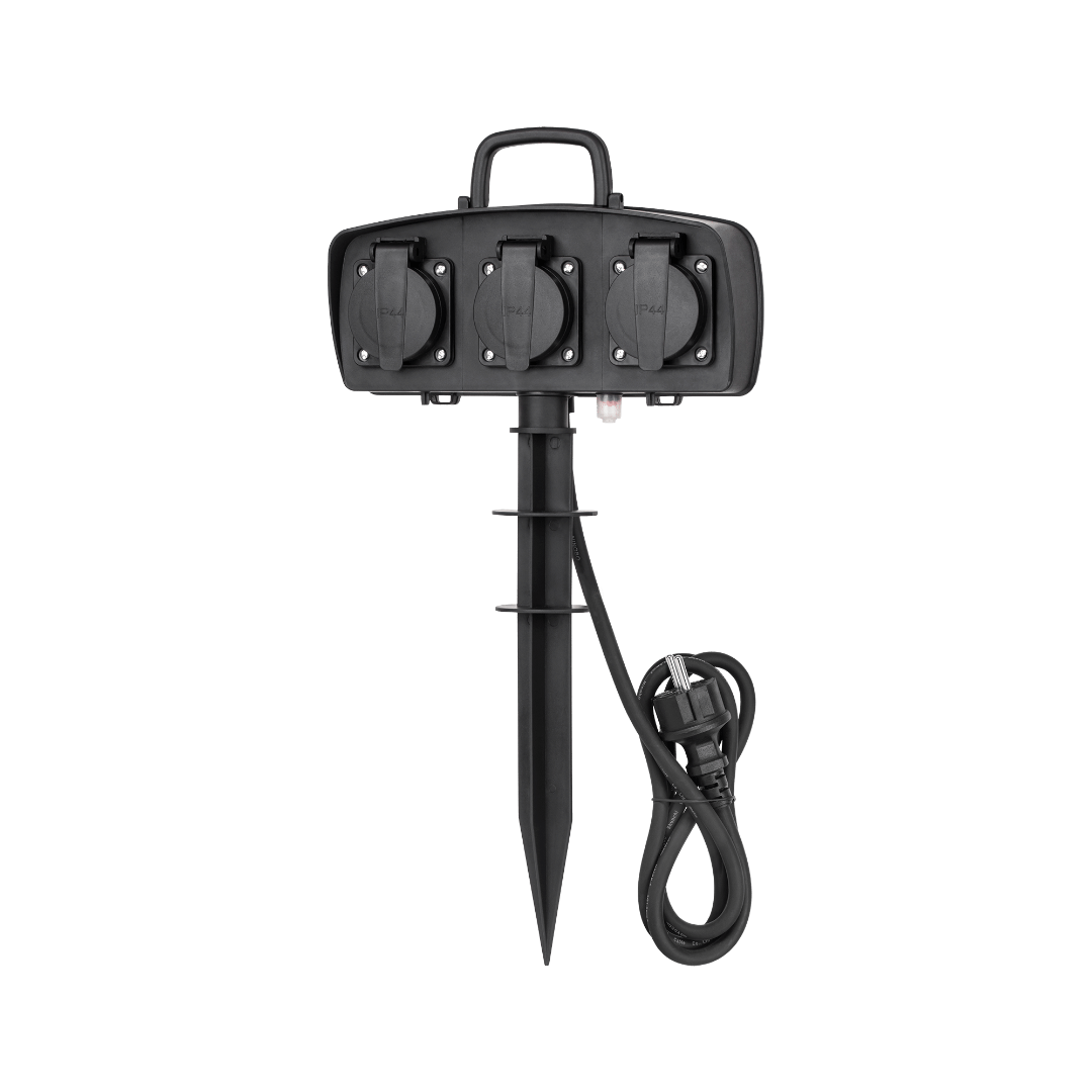 Waterdichte stekkerdoos met 3 stopcontacten voor uw tuin
