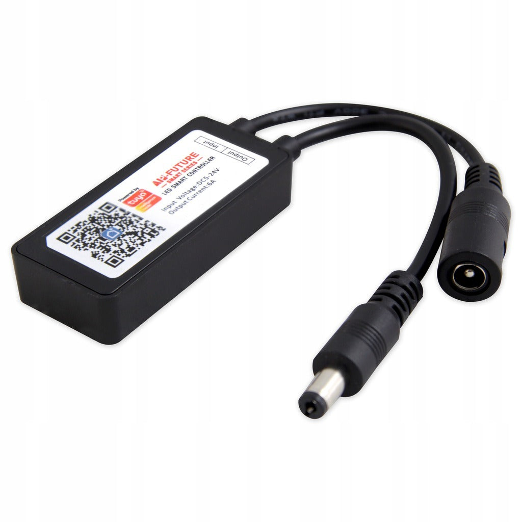 Deze LED dimmer kunt u gemakkelijk verbinden met elke lichtbron die dimbaar is. De dimmer werkt goed samen met bijvoorbeeld LED strips van 5,12 of 24 Volt. Op de dimmer zit een normale aan/uit knop, waarmee de dimmer aan en uit gezet kan worden. Met deze knop kunt u daarnaast ook de verlichtingsmodus van de LED strip veranderen. Verder is dit een "smart" dimmer, wat inhoudt dat deze met WIFI verbonden kan worden en samenwerkt met de TUYA smart app voor gemakkelijke en gebruiksvriendelijke bediening. De dimmer heeft een standaard 5,5 x 2,1 mm aansluiting als voeding, die u ook bij ons kunt vinden. Als uitvoer heeft de dimmer dezelfde 5,5 x 2,1 mm plug, die universeel aangesloten kan worden.