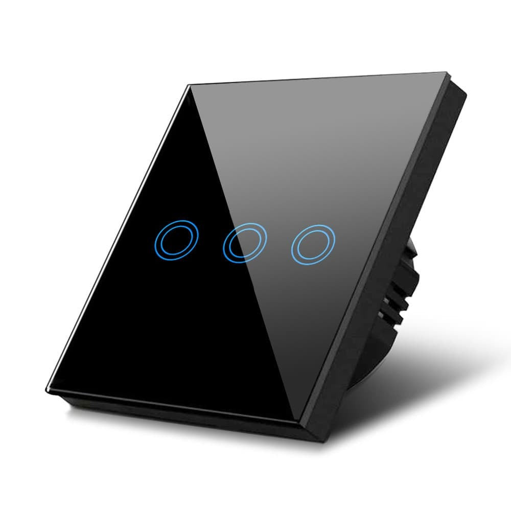 - Wandschakelaar met verlichting - Drievoudig - Touch bediening - Zwart Wandschakelaar met verlichting - Drievoudig - Touch bediening - Zwart