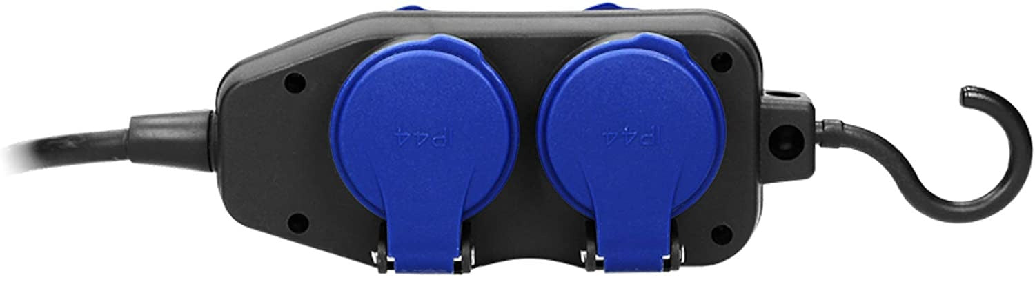 De stekkerdoos welke 4 230V aansluitingen heeft een beschermingsklasse van IP44 en hierdoor ideaal voor buitengebruik.